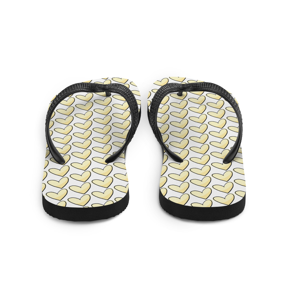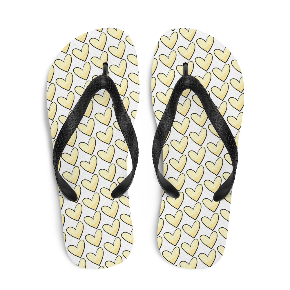 Yellow Hearts Frabic Flip-Flops
