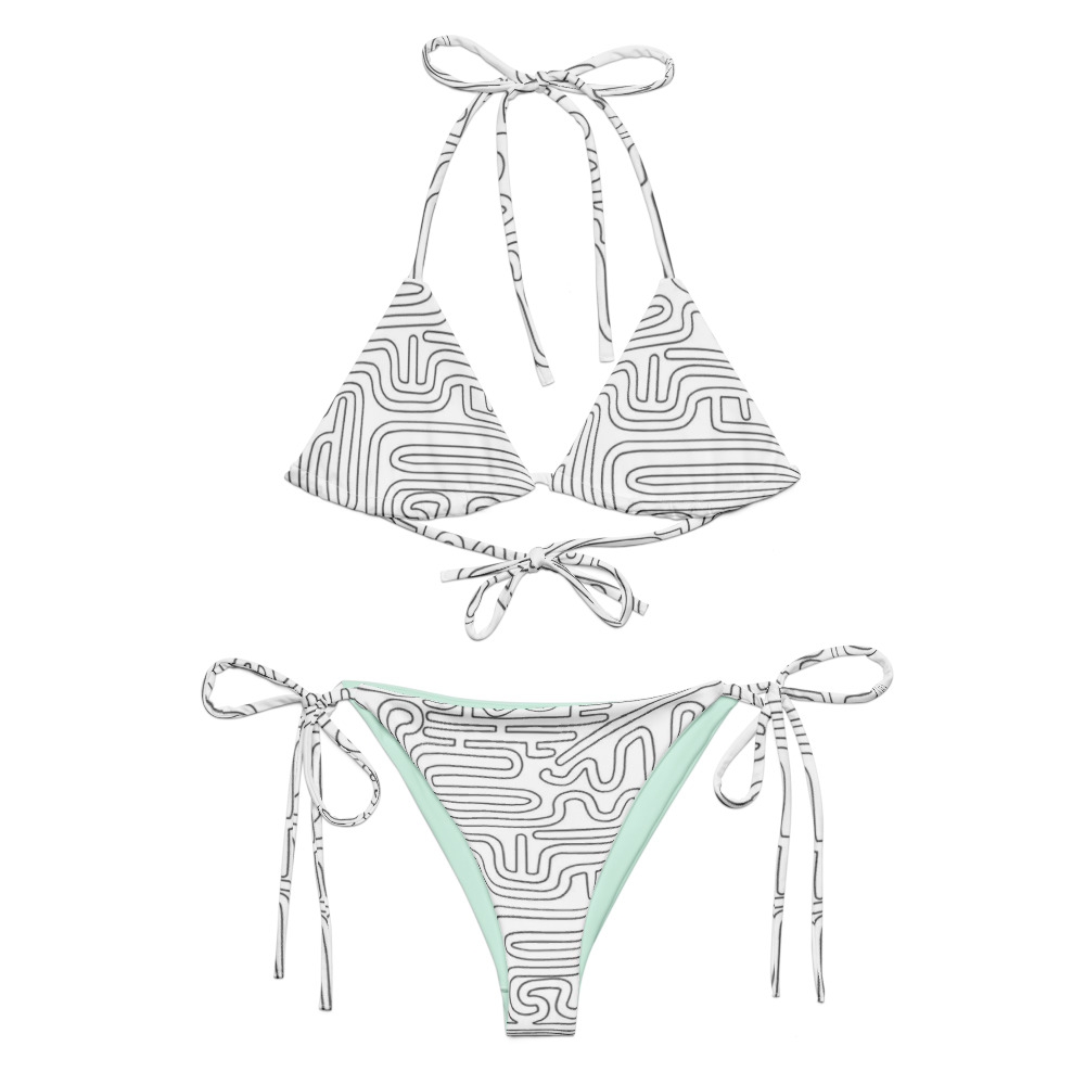 Stay comfortable and stylish all summer with this All-Over Print Recycled String Bikini set. Its made from soft recycled polyester with double-layering and UPF 50+. Style the straps how you like, and get ready to swim!
